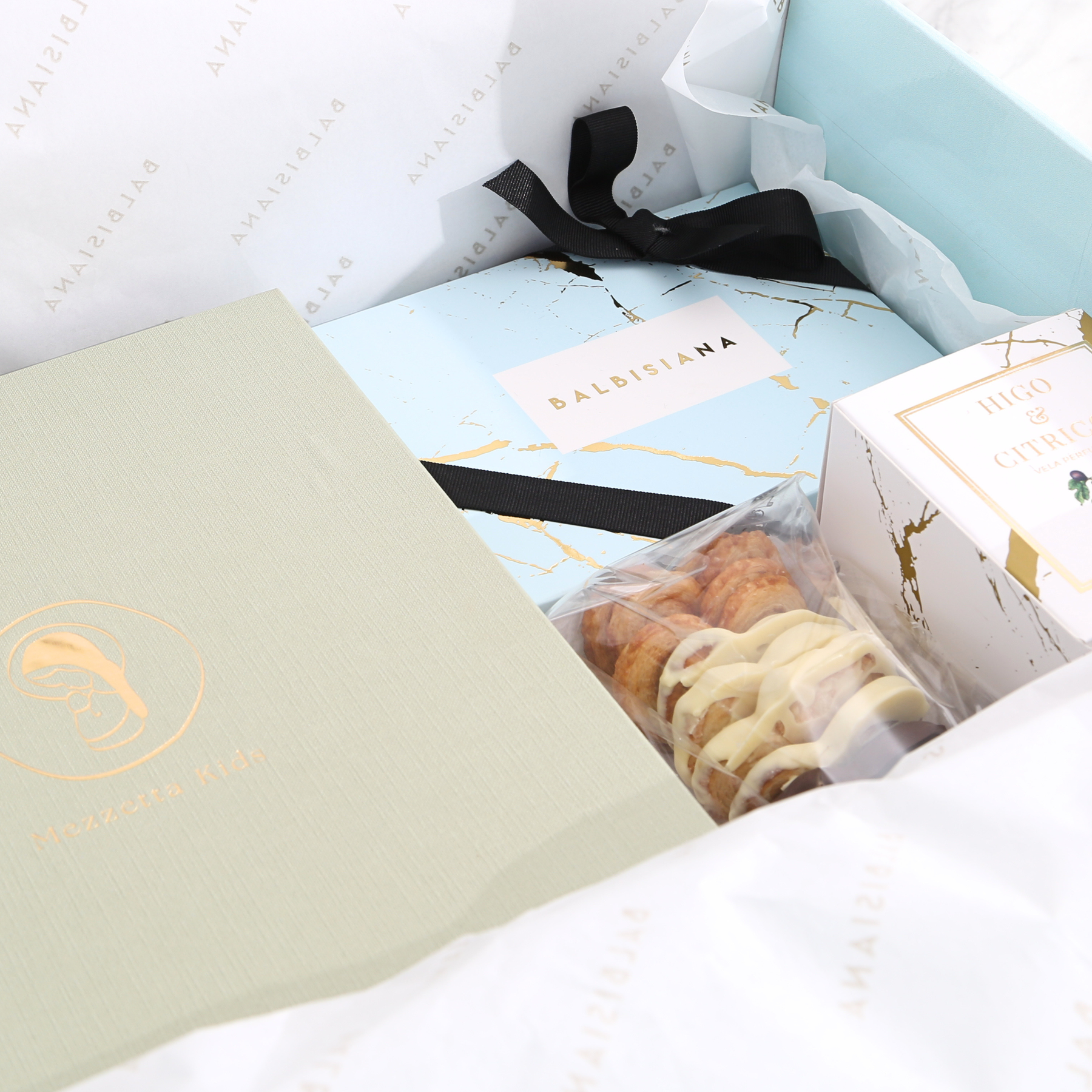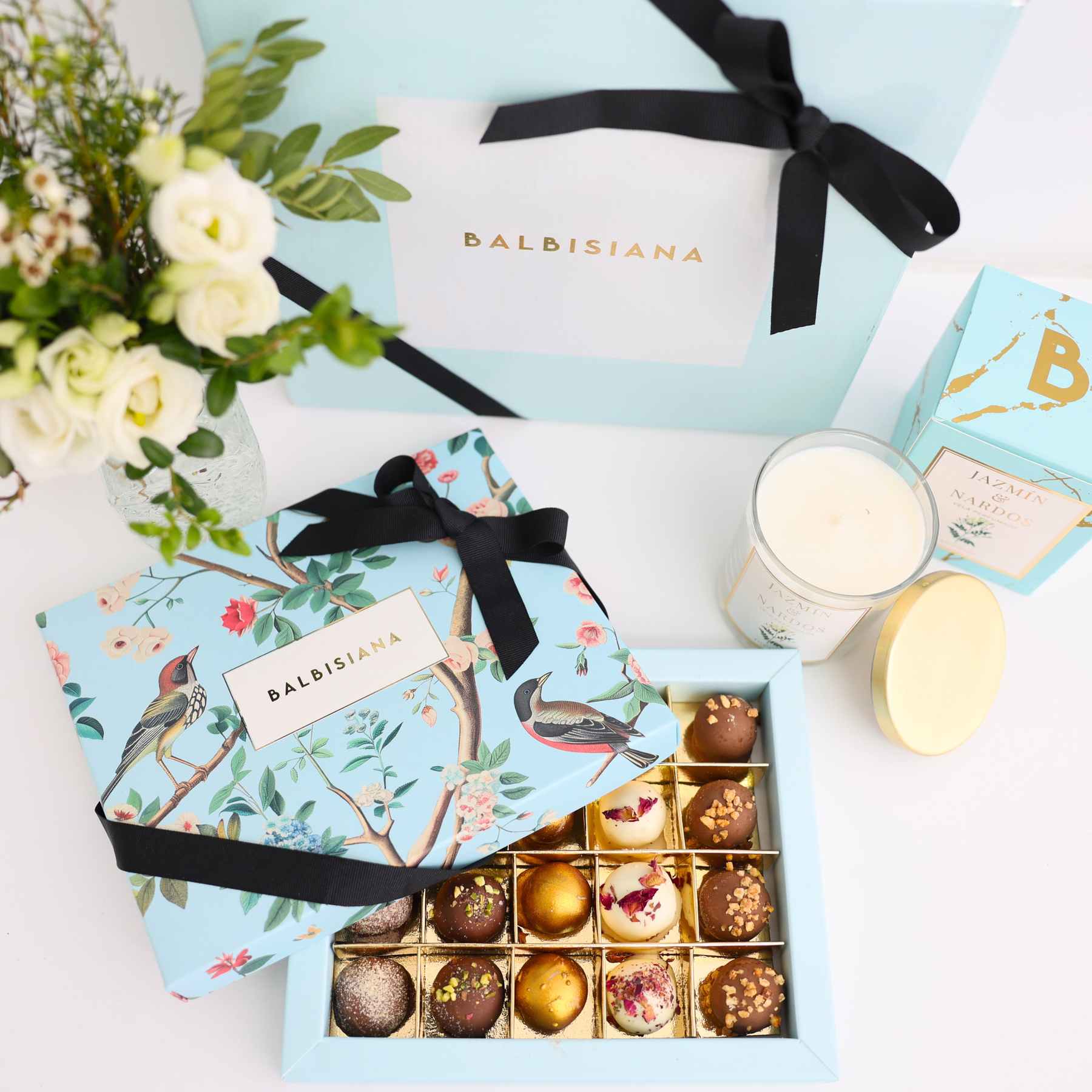 Nuestras cajas regalo llegan envueltas en una exclusiva caja Balbisiana Deluxe, envuelta en delicado papel de seda y el toque final de un lacito negro, una experiencia de regalo pensada para deslumbrar desde el primer momento.
