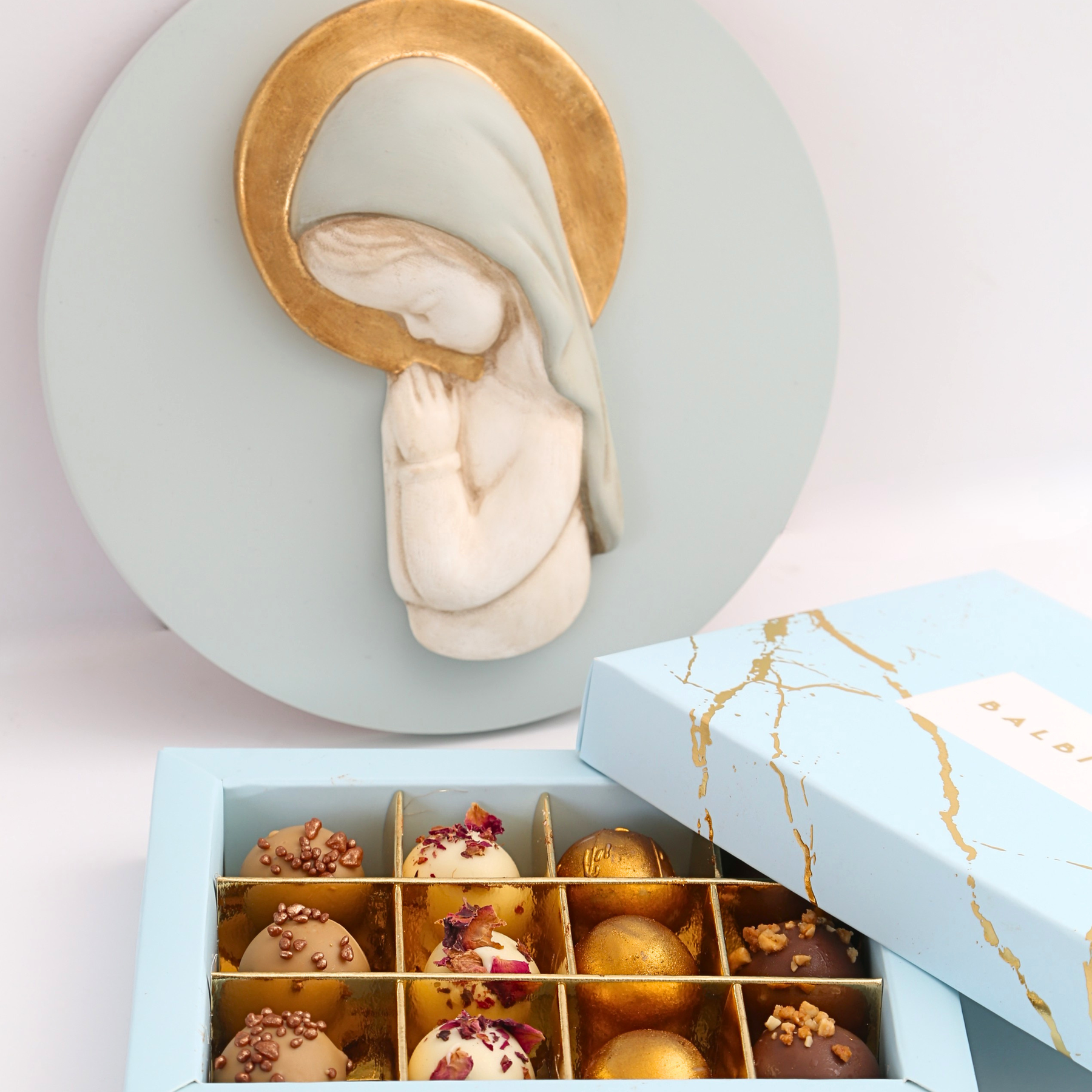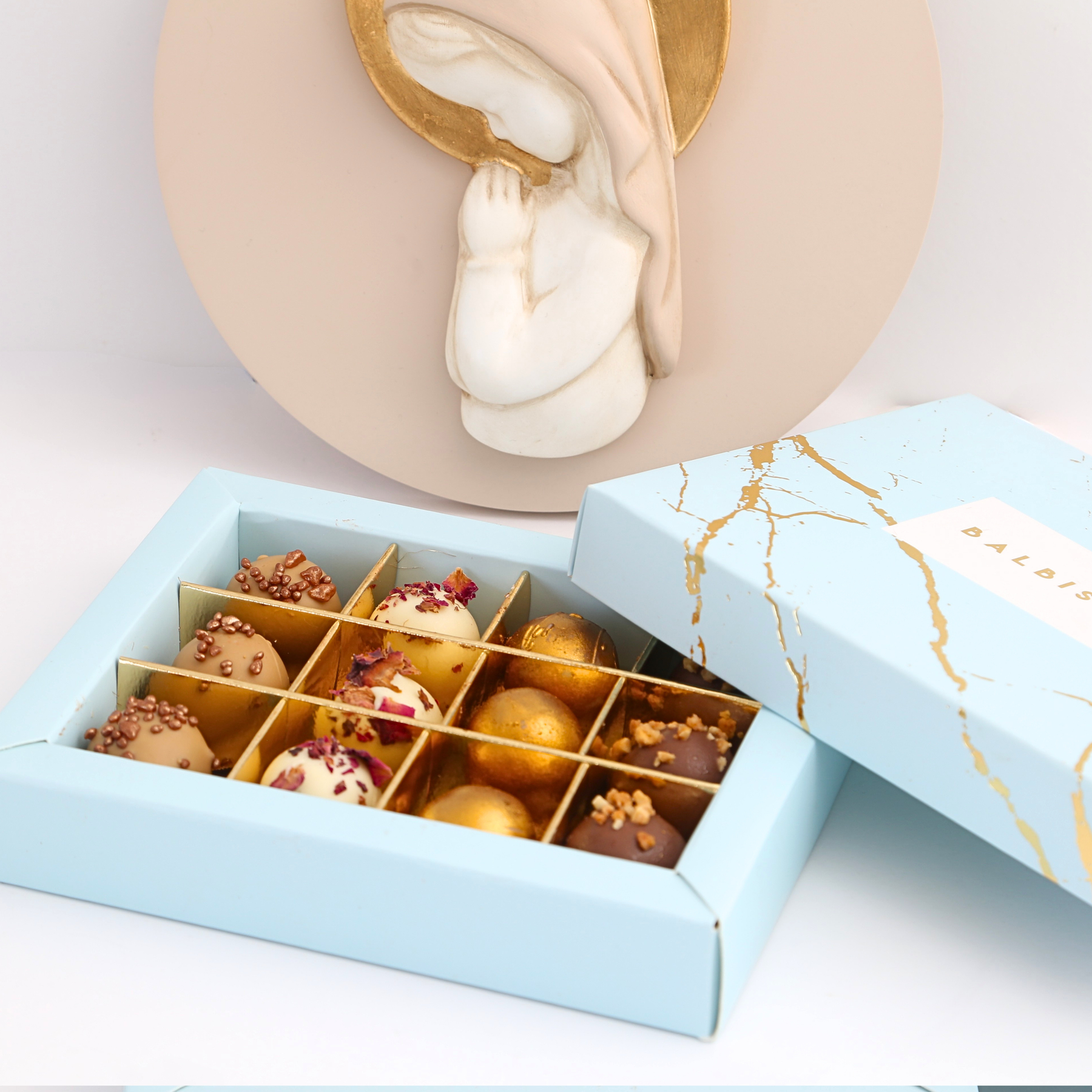 La experiencia gourmet se completa con una caja de 12 trufitas artesanales, con sabores variados como praliné, chocolate con leche, oreo y chocolate blanco, pensadas para disfrutar y compartir en un momento tan especial.